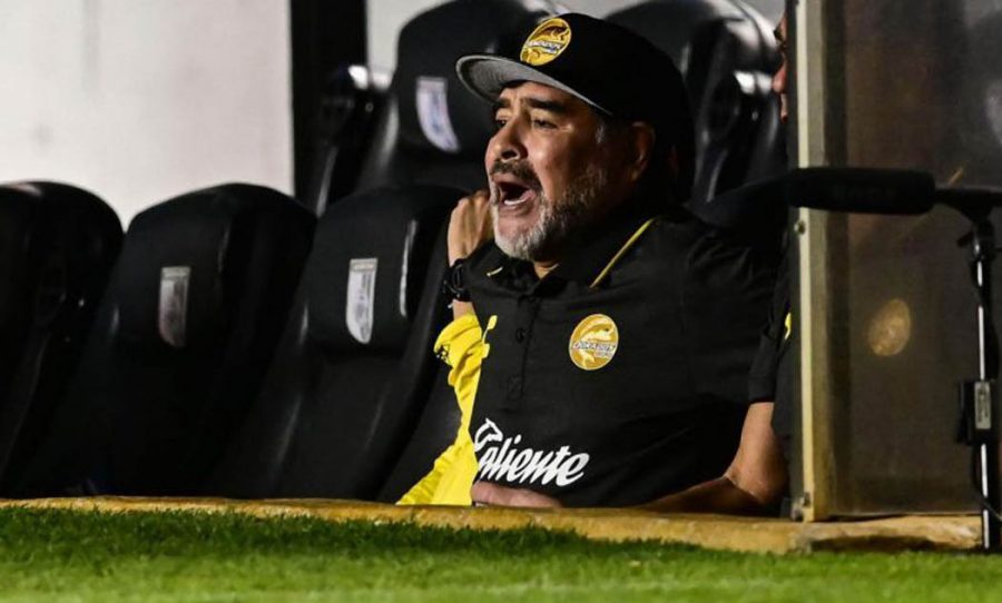 Maradona estuvo a punto de caerse en plena conferencia pues tuvo dificultades para sentarse.