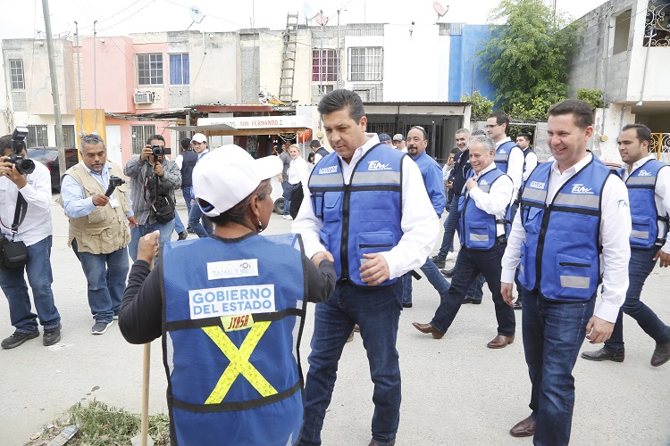 El mandatario estatal realiza gira de trabajo para supervisar las acciones del plan Unidos por Tamaulipas implementado en 35 colonias de esta ciudad fronteriza.