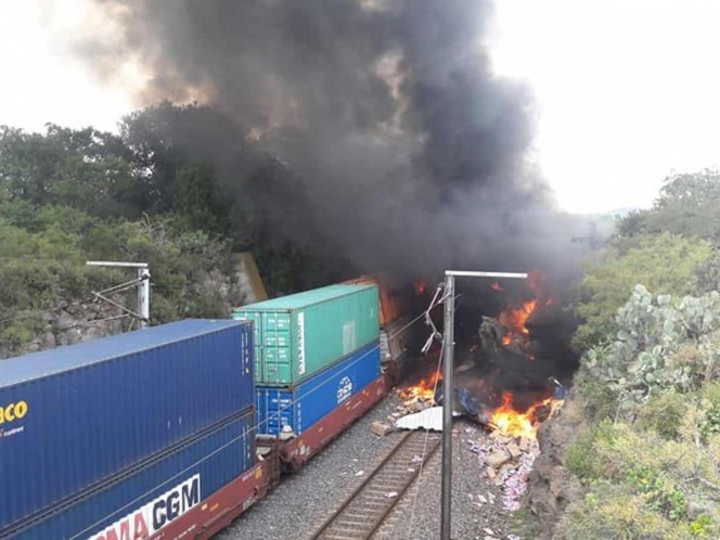 En el sitio se encontraba detenida una locomotora con 37 vagones, que transportaban mercancía diversa, la cual presuntamente era saqueada en los momentos en que otra máquina que transportaba maíz y que circulaba por la misma vía se impactó por alcance, provocando el descarrilamiento de varios vagones y el incendio de la maquina 4084.