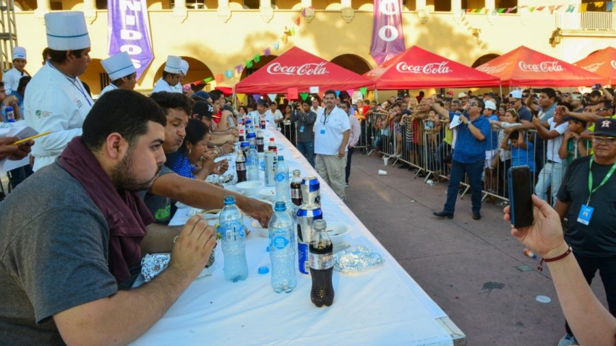 De manos del segundo síndico Santiago Sáenz Cárdenas, representante del presidente municipal Enrique Rivas, el ganador del concurso ‘El Más Glotón’, Marco Antonio Duarte, representante de la Universidad Tecnológica, recibió el premio de 9 mil 400 pesos por comer 26 tacos en un lapso de 15 minutos. En la competencia participaron 22 personas.