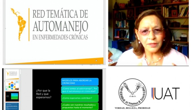 En la exposición del tema, dentro del Congreso Internacional Virtual de Enfermería 2020: “Desafío e Innovación en el cuidado ante las enfermedades emergentes”, explicó los modelos para abordar la cronicidad, el automanejo en la cronicidad y la contribución de la red en la que participan, las Facultades de Enfermería de Victoria y Tampico de la UAT, la Secretaría de Salud, Diris Lima Norte de Perú, y otros organismos e instituciones.