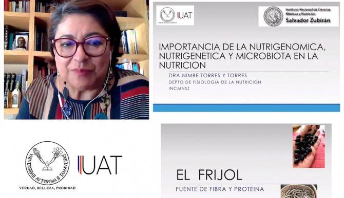 La Unidad Académica Multidisciplinaria Reynosa Aztlán (UAMRA) de la Universidad Autónoma de Tamaulipas (UAT), realizó por la vía virtual la conferencia “Importancia de la nutrigenómica, nutrigenética y microbiota en la Nutrición”, en el marco del 6o. Congreso Nacional de la Licenciatura en Nutrición y Ciencias de los Alimentos.