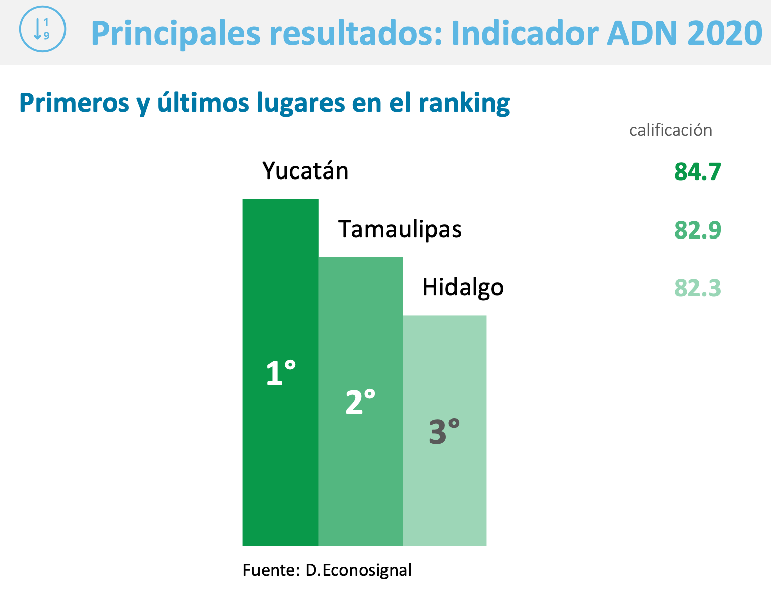 ADN 2020 ubicó a Yucatán como la mejor entidad para realizar negocios, seguida de Tamaulipas e Hidalgo.