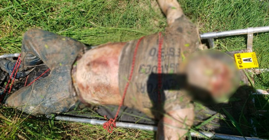 La persona fallecida que se encuentra sin ser identificada vestía calcetas color negro, pants color negro con líneas color blanco, sudadera color negro, así mismo cuenta con tatuaje en antebrazo derecho la imagen de unos árboles y un tribal.