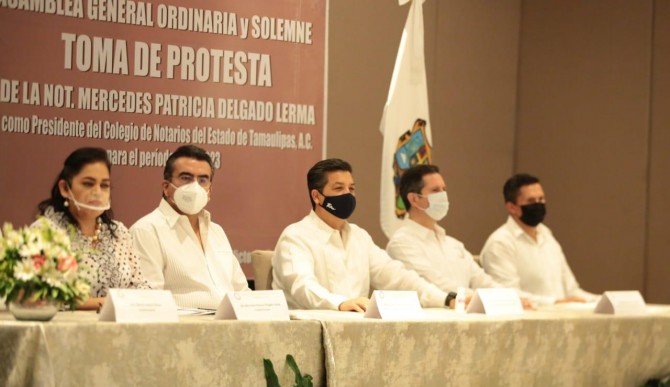 El Gobernador Cabeza de Vaca, tomó protesta a la nueva presidenta del organismo, Mercedes Patricia Delgado Lerma, quien estará al frente durante el periodo 2021-2023, esto al celebrarse la Asamblea General Ordinaria del Colegio de Notarios del Estado de Tamaulipas.