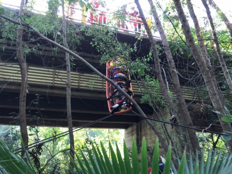 El cuerpo del joven quedó entre unos matorrales del lecho del Río San Marcos, por lo que el esfuerzo de los paramédicos fue mayor, pues hicieron maniobras de rescate para elevar el cuerpo del joven para no lastimarlo más.