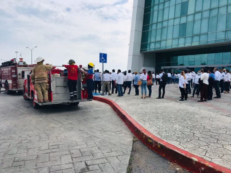 Un total de mil 250 trabajadores de la Torre Bicentenario en Ciudad Victoria fueron evacuados esta mañana por una falsa alarma de conato de incendio en el piso 15.
