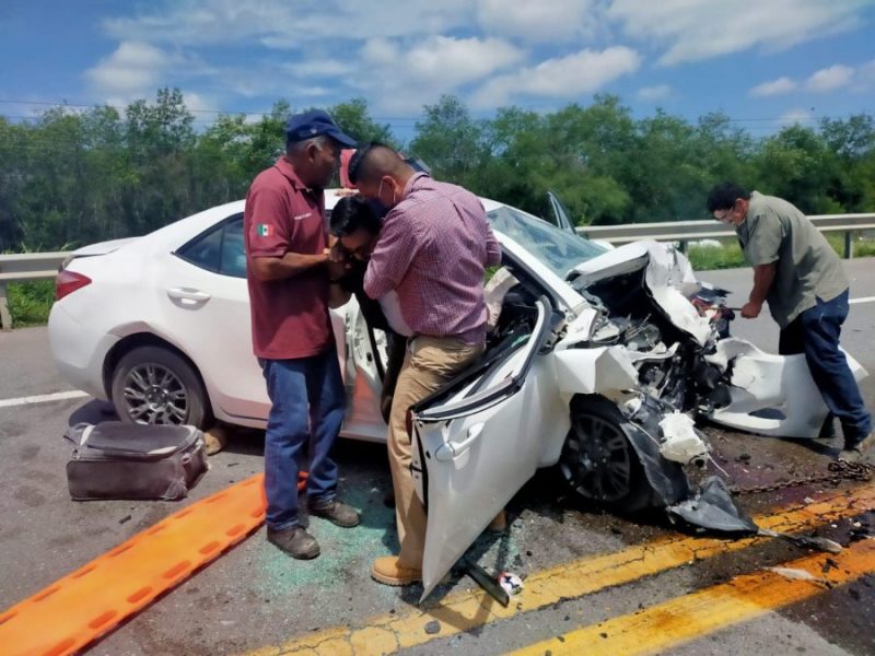 Una mujer muerta y al menos seis lesionados fue el saldo de un fuerte choque registrado este mediodía en el kilómetro 103 de la carretera nacional Victoria-Monterrey.