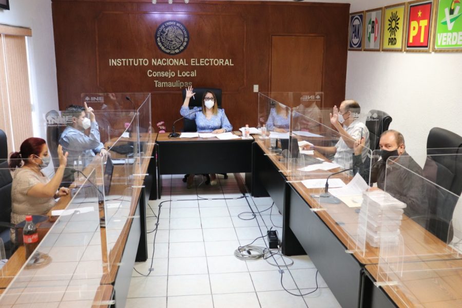 La Vocal Ejecutiva de la Junta Local del INE en Tamaulipas, la Mtra. Olga Alicia Castro Ramírez, en su informe refirió que un aspecto importante fue la concertación de una reunión de trabajo con diversas instancias de seguridad dentro de las que destaca la Guardia Nacional, la Secretaría de Seguridad Pública, la Secretaría de Gobernación, el Centro Nacional de Inteligencia y la Coordinación de Operaciones de la Secretaría de Seguridad Pública, con los que se acordó la adecuada coordinación para que todas las fuerzas estén en disposición del auxilio de la ciudadanía que participará en la Jornada y de las propias autoridades electorales, contando además con el apoyo para el acompañamiento y custodia de los 19 Centros de Recepción y Traslado Fijos que se instalarán en territorio tamaulipeco. Asimismo, se reactivó el Convenio General de Colaboración con el Gobierno del estado para el uso de escuelas y oficinas públicas para la instalación de las mesas receptoras. Se gestionaron las medidas para limitar la venta de alcohol desde el día previo a la Jornada; la apertura de oficinas del notariado, así como el auxilio de ministerios públicos y jueces del fuero común y federales, entre otras gestiones. También se dio cuenta de la adquisición de los insumos sanitarios para las casillas, tanto para la limpieza y desinfección previa y posterior, como aquellos de higiene y protección que se usarán en las casillas y los cuales se distribuyeron a las presidencias de mesas receptoras junto a los paquetes electorales.