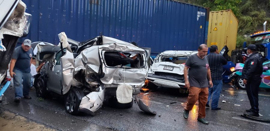 Al menos 10 personas lesionadas entre ellos una menor, es el saldo hasta el momento de una carambola en la que participaron cinco vehículos, una pipa y un tracto camion doble articulado.