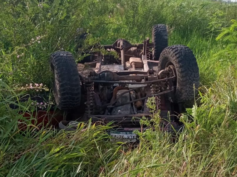 Presuntamente el exceso de velocidad hizo que el conductor de la camioneta Jeep Grand Cherokee hizo que perdiera el control al volante y terminara volcado a un costado de la carretera.