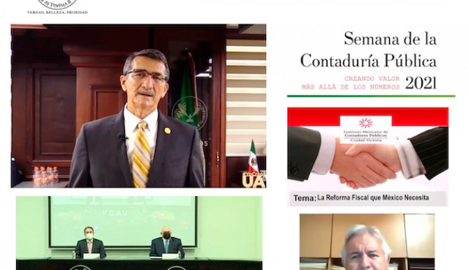 Las conferencias se desarrollan del 6 al 10 de septiembre, a las seis de la tarde, por Facebook Live de la Facultad de Comercio y Administración Victoria. La primera de ellas estuvo a cargo del C. P. Alfredo Esquivel Boeta, quien impartió el tema “La reforma fiscal que México necesita”.