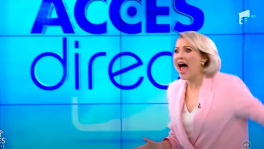 Durante la transmisión de un noticiario en Rumania, una mujer irrumpió desnuda para atacar a la presentadora.