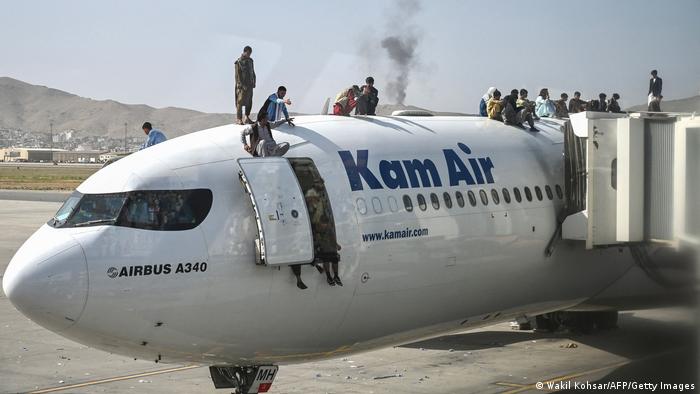 Los videos tomados desde la terminal mostraron a cientos de afganos ingresando a las pistas e intentando impedir el despegue de una de las aeronaves estadounidenses.