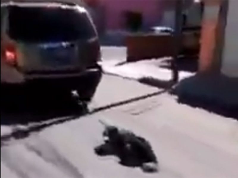 Un video que circula en redes sociales muestra el momento en el que una mujer, que viaja en una camioneta, arrastra a un perro amarrado al vehículo, en Tehuacán, Puebla.