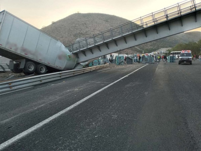 Cae puente peatonal sobre tráiler en la Querétaro-SLP