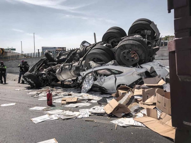 Una persona muerta y tres más lesionadas fue el saldo que dejó un accidente de transito protagonizado por un tractocamión, el cual impacto dos camiones más de carga, y finalmente aplastó a una camioneta.