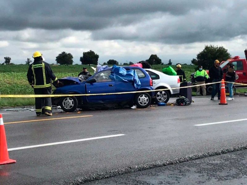 El accidente sucedió como a las 8:00 horas, a la altura del kilómetro 26+280, específicamente en la desviación hacia Huamantla, donde estuvieron involucrados un vehículo modelo Chevy, de azul y placas de Puebla y otro Jetta, de color gris y matrícula del Estado de México.