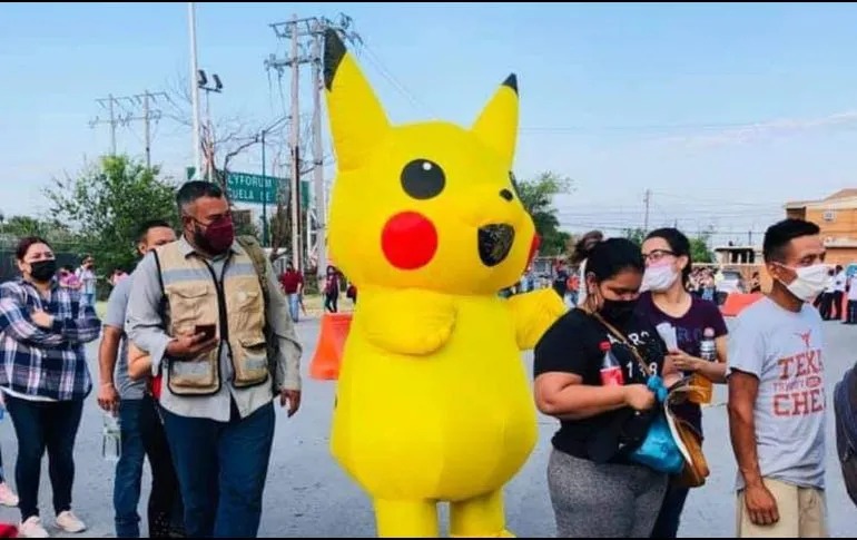Rápidamente, las fotografías comenzaron a circular en redes sociales donde se puede ver a “Pikachu” haciendo fila y animando a los demás jóvenes mayores de 18 años.
