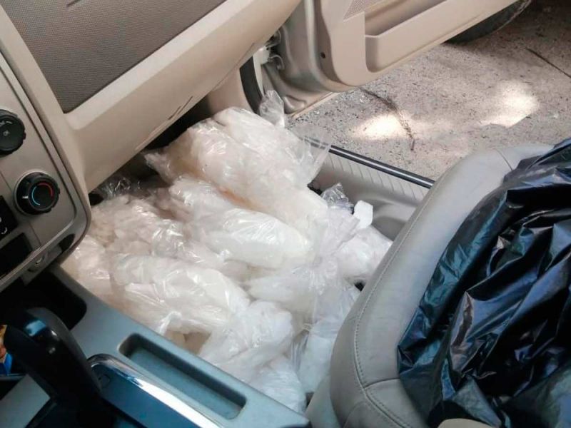 Elementos de la Guardia Nacional aseguraron aproximadamente 30 kilos 800 gramos de crystal que iban ocultos en un compartimento adaptado al asiento del copiloto de una camioneta en Sinaloa.