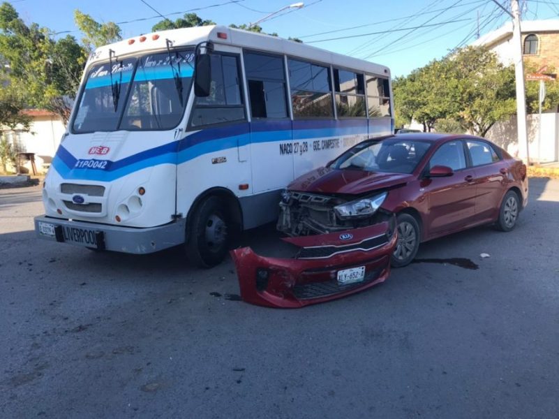 Ciudad Victoria, Tamaulipas.- El conductor de un vehículo provocó un aparatoso accidente vial esta tarde, luego de impactarse contra un microbús de la ruta Nacozari , en el 14 Oaxaca, en ciudad Victoria.
