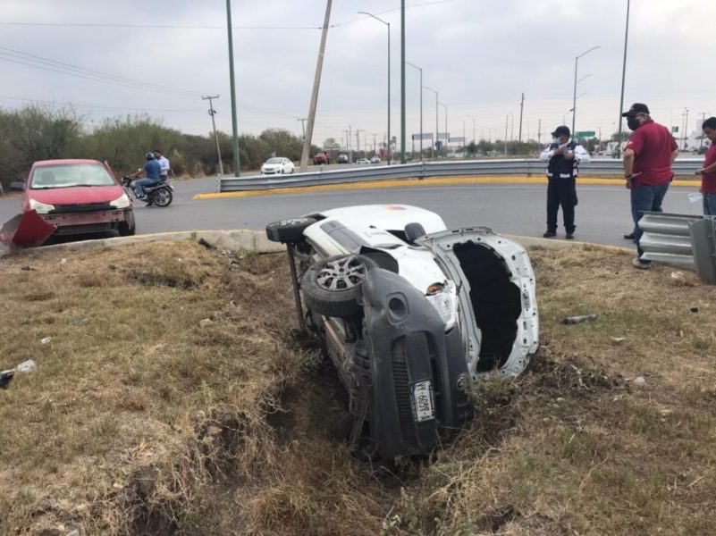 Un choque y volcadura registrado esta mañana en el libramiento Naciones Unidas y salida a Matamoros, dejó como saldo cuantiosos daños materiales.