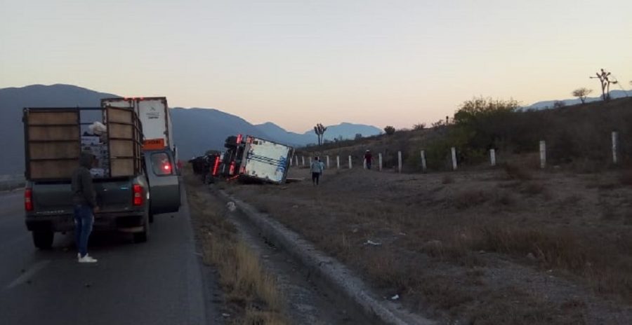 Un tráiler que trasportaba varias toneladas de limones volcó esta mañana luego de chocar contra una camioneta, resultando el chofer lesionado, en el kilómetro 52 de la carretera Tula-Victoria.