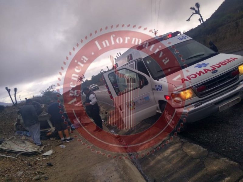 El accidente se registró entre una camioneta Ford tipo F-150 y un auto compacto, el cual este último terminó volcado y convertido en chatarra.