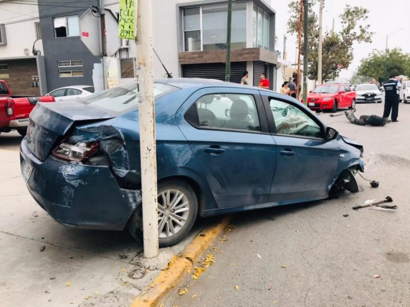 El accidente ocurrió la mañana de este martes cuando un automóvil Peugeot color azul circulaba por la calle Norberto Treviño Zapata en sentido de norte a sur.