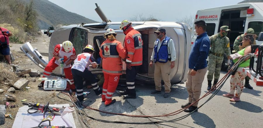 Un conductor quedó prensado por una hora mientras era rescatado por técnicos en urgencias médicas de la Cruz Roja esta tarde, tras volcar el automóvil en el que viajaba junto a una mujer en la carretera Rumbo Nuevo.