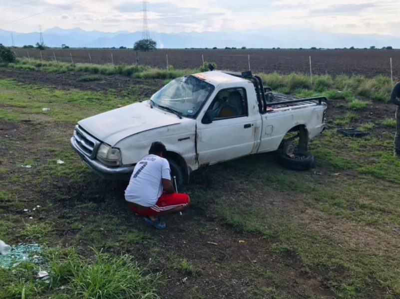 Un joven conductor resultó ileso luego de volcar la camioneta que dirigía presuntamente por que un neumático se le averió esta tarde, en el kilómetro 17 de la carretera Victoria-Matamoros.