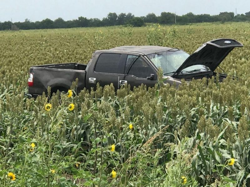 En dicho lugar se salió de la carretera una camioneta Ford, Lobo, oscura con placas de Texas y acabó en el interior de la parcela.