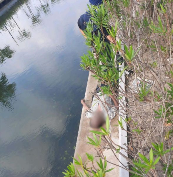 El cuerpo sin vida de un adulto mayor fue encontrado flotando en el Canal de la cortadura de Tampico, un lagarto estaba a punto de hundirlo.