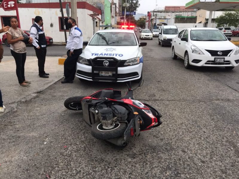 La mujer que conducía una motoneta resultó con algunos raspones y fue necesario que técnicos en urgencias médicas de la Cruz Roja le brindaran la atención pre hospitalaria.