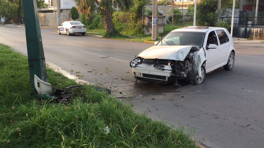Un conductor provocó un aparatoso accidente luego de impactar su vehículo contra una luminaria la mañana de este miércoles en el 13 bulevar Adolfo López Mateos dejando como saldo cuantiosos daños materiales