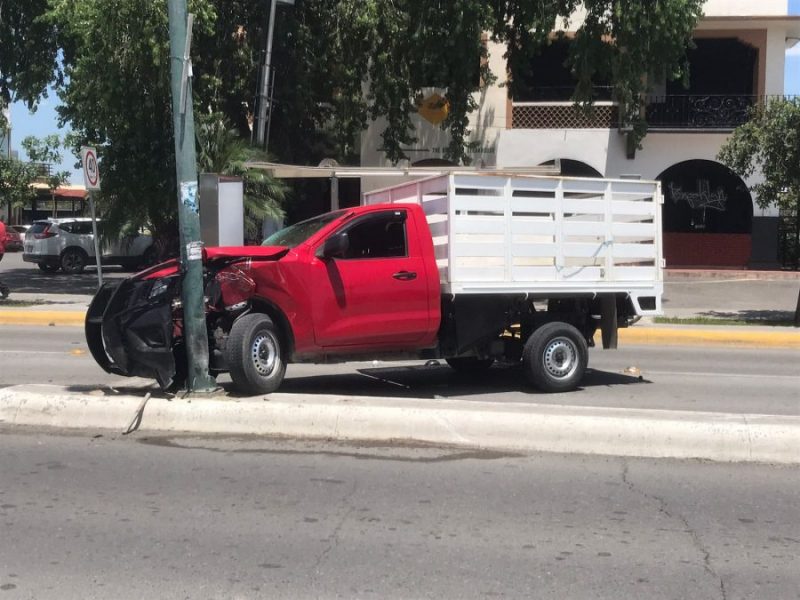Una familia de tres integrantes entre ellos un menor de edad resultó lesionada esta tarde, luego de que la camioneta en la que viajaban se estrelló contra una luminaria.
