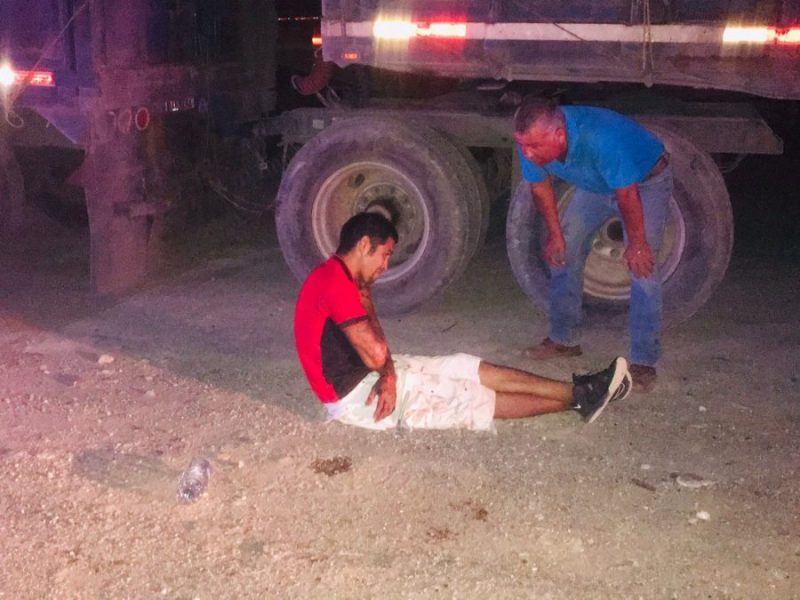Una joven pareja que viajaba a bordo de una motocicleta y en presunto estado etílico resultó lesionado durante la noche, luego de que un perro salió a ladrarles cuando estaba echado debajo de un tráiler y los tumbó.