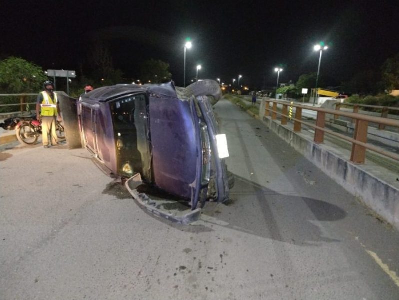 El conductor guiaba una camioneta GMC tipo Jimmy en dirección de norte a sur, sin embargo, a la altura del puente perdió el control al volante y se proyectó contra la banqueta para terminar volcado.