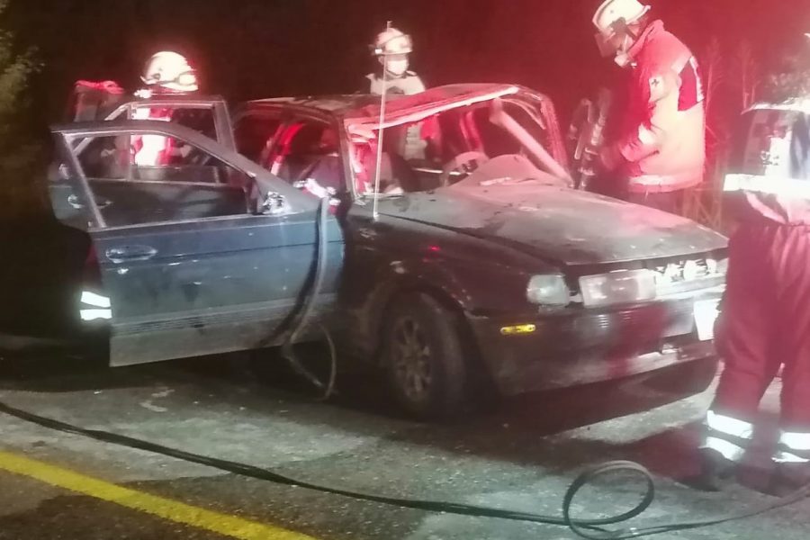 Al sitio acudieron tres ambulancias de la Cruz Roja y un camión de rescate, para liberar a una mujer que quedó atrapada al interior de un vehículo Nissan tipo Tsuru.