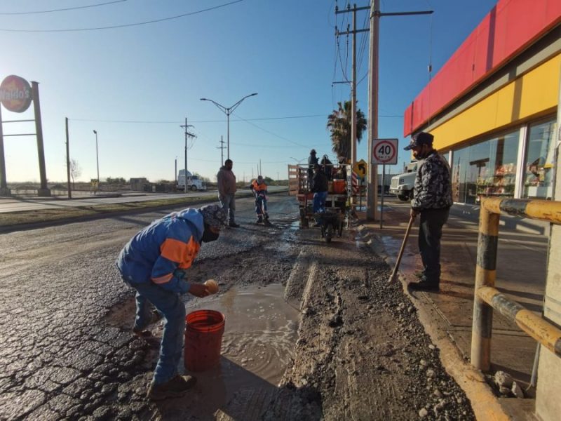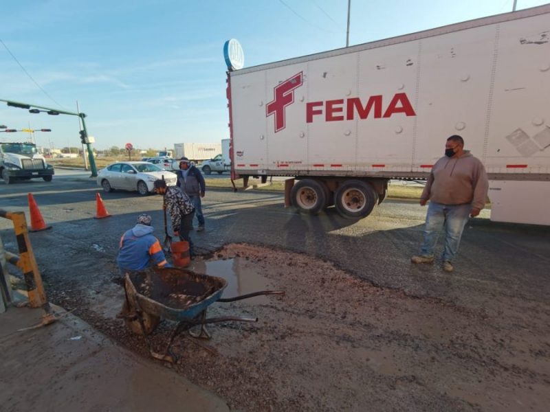 Juan José García Robles, coordinador de la Jefatura de Bacheo, expresó que el mal estado de esa vialidad se debe a la desviación que se hizo de tráileres que necesitan cruzar de Carretera Aeropuerto a Reforma o Carretera Nacional, por la construcción del puente vehicular que se realiza en Aeropuerto y Monterrey.