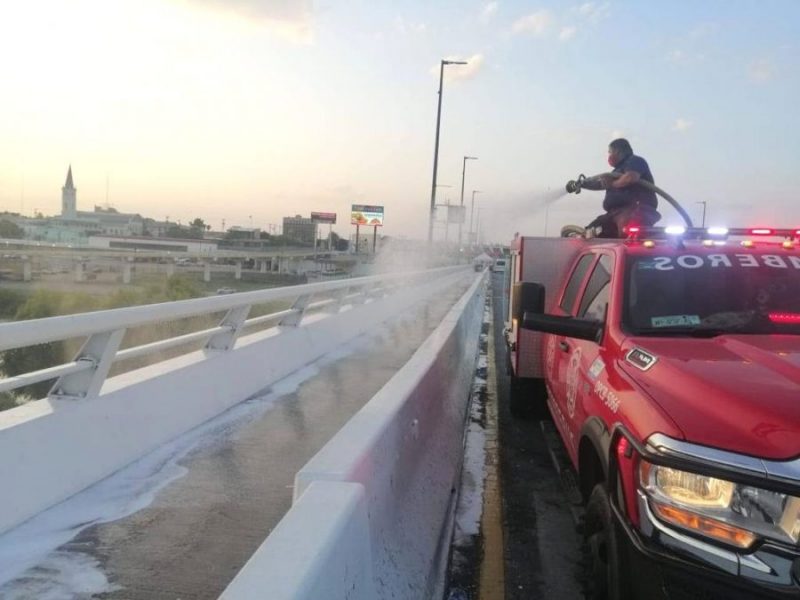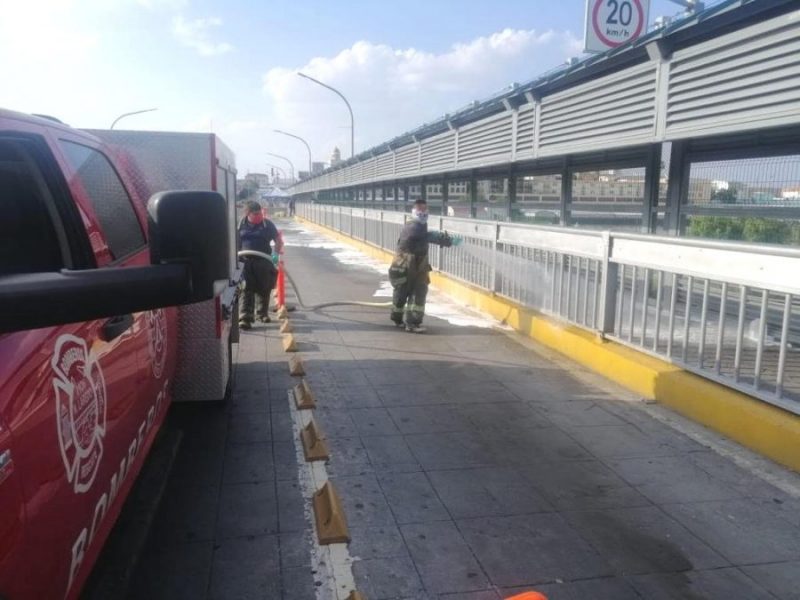 La Dirección de Protección Civil y Bomberos (PCyB), llevó a cabo la desinfección de las oficinas de Caminos y Puentes Federales (CAPUFE) y los puentes internacionales 1 y 2, con el propósito de evitar más contagios de Covid-19.