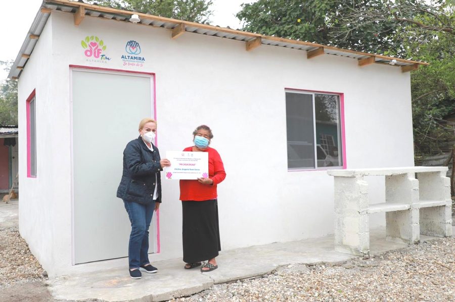 Generando bienestar y mejorando las condiciones de vida de altamirenses en situación de vulnerabilidad, como parte del programa “Mi Casa Digna’’, la alcaldesa Alma Laura Amparán Cruz, hizo entrega en el ejido Maclovio Herrera (Miradores) de dos viviendas beneficiando a las señoras María del Rosario Martínez Chávez y Gregoria Tovar García.