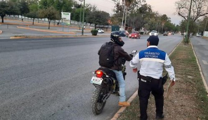 La Dirección de Tránsito de Victoria inició en coordinación con la Policía Estatal un operativo denominado “Moto Segura”, en el que se orienta a los motociclistas en el uso correcto del casco protector y la prevención de accidentes.
