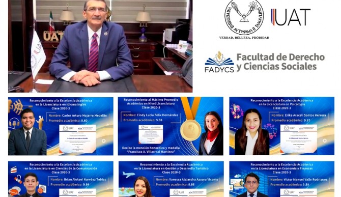 El Rector de la Universidad Autónoma de Tamaulipas (UAT) Ing. José Andrés Suárez Fernández felicitó por la vía virtual a los integrantes de la Generación Clase 2020-3 de la Facultad de Derecho y Ciencias Sociales de Tampico (FADYCS).