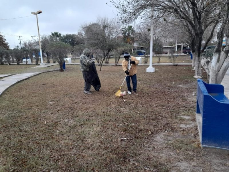 Mantiene Gobierno de Río Bravo limpieza en plazas públicas