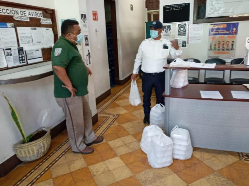 Elementos de la Policía Estatal coordinación Tampico entregaron comida caliente a familiares de pacientes que se encuentran a las afueras y en la sala de espera del Hospital General de Tampico «Dr. Carlos Canseco» que se ubica en la Avenida Ejercito Mexicano.