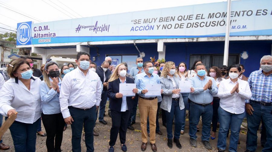 En acto desarrollado en las instalaciones del Comité Directivo Municipal del Partido Acción Nacional, les fueron entregadas las constancias de registro a los candidatos del PAN a la Presidencia Municipal de Altamira, y a las diputaciones locales por los distritos 18 y 19, ante el Instituto Electoral de Tamaulipas (IETAM).
