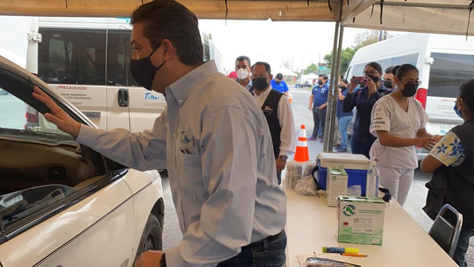 El mandatario acudió al punto de vacunación con modalidad “Drive Thru”, instalado en el campus de la Universidad Autónoma de Tamaulipas, a donde acudieron adultos mayores a fin de recibir el biológico desde sus vehículos. El objetivo de esta estrategia es evitar aglomeraciones y agilizar el proceso de inmunización para la población objetivo.