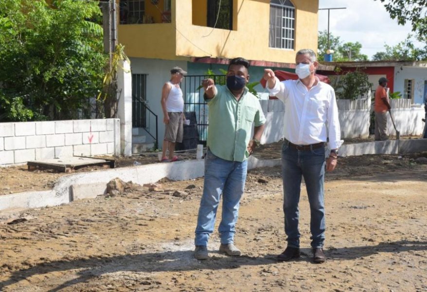 El mandatario estuvo también en la calle Emiliano Zapata, de la colonia Tancol, donde supervisó los trabajos de pavimentación a base de concreto hidráulico que se efectúan en esta vialidad con recursos municipales.