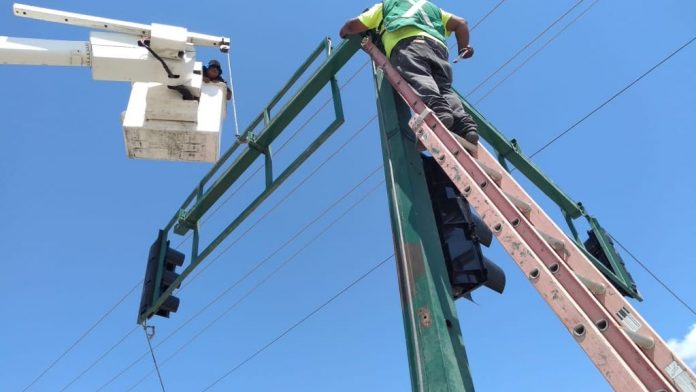 «Estamos reponiendo los brazos, cabezales y luces de los semáforos que sufrieron daños por la tormenta del pasado 17 de mayo.